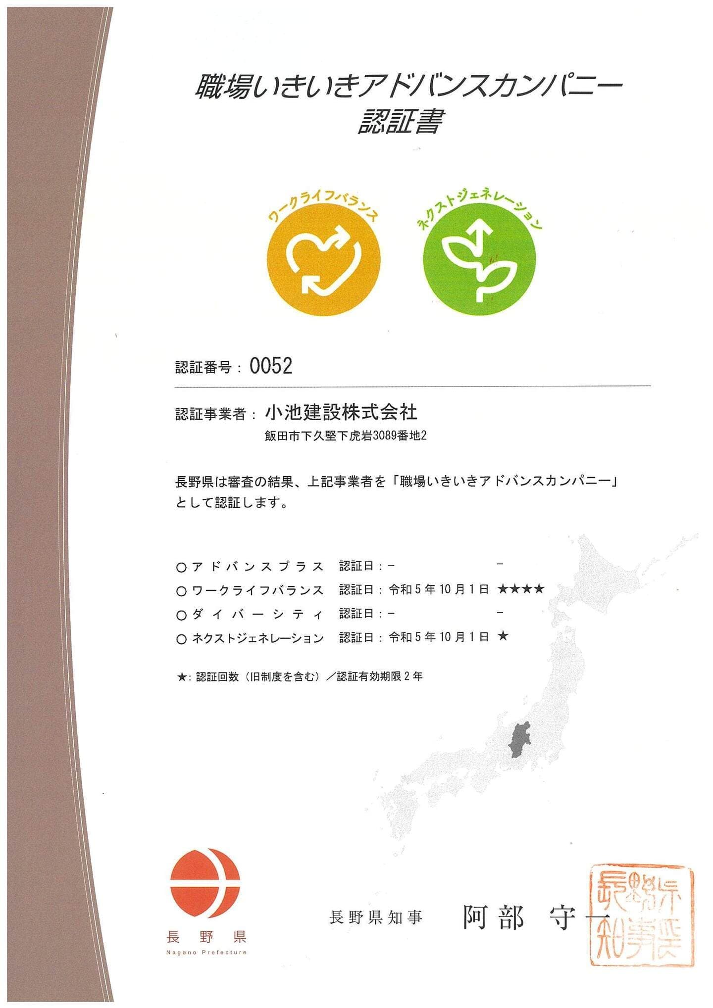 長野県が推進する認証制度で、誰しもが活き活きと働くことができる職場環境づくりに先進的に取り組み、実践する企業を認証するものです。